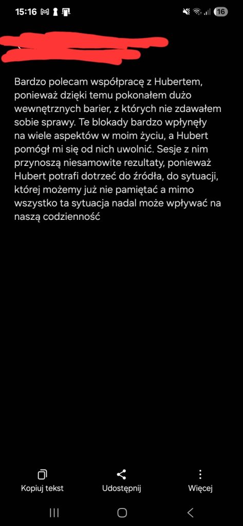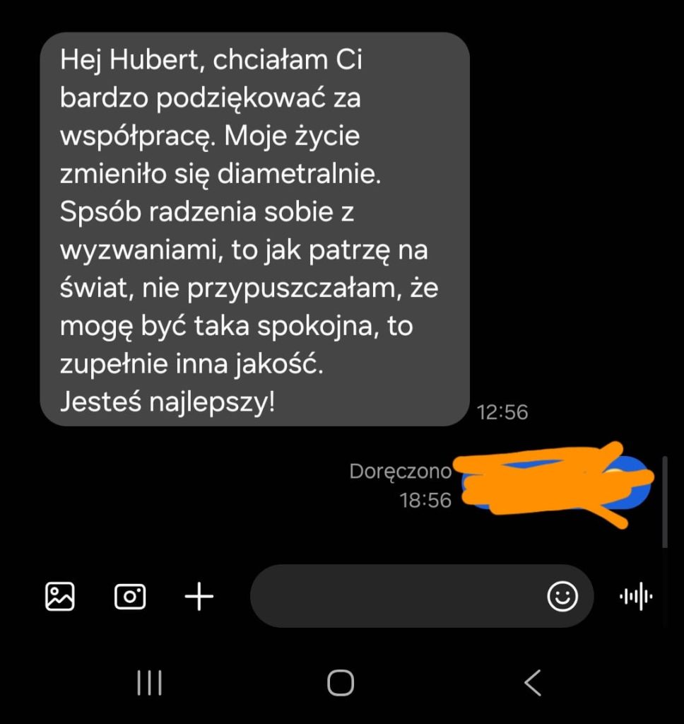 Moi klienci to osoby, które mają wiedzę, ale czują, że ich własny umysł blokuje ich przed wyjściem do świata. Dzięki hipnoterapii zaczynają dostrzegać, że bezpieczeństwo nie polega na byciu niewidzialnym, ale na zaufaniu do swoich kompetencji. Uczę ich, jak wyłączyć wewnętrznego krytyka, przestać porównywać się do innych i wreszcie zacząć budować biznes na własnych zasadach.